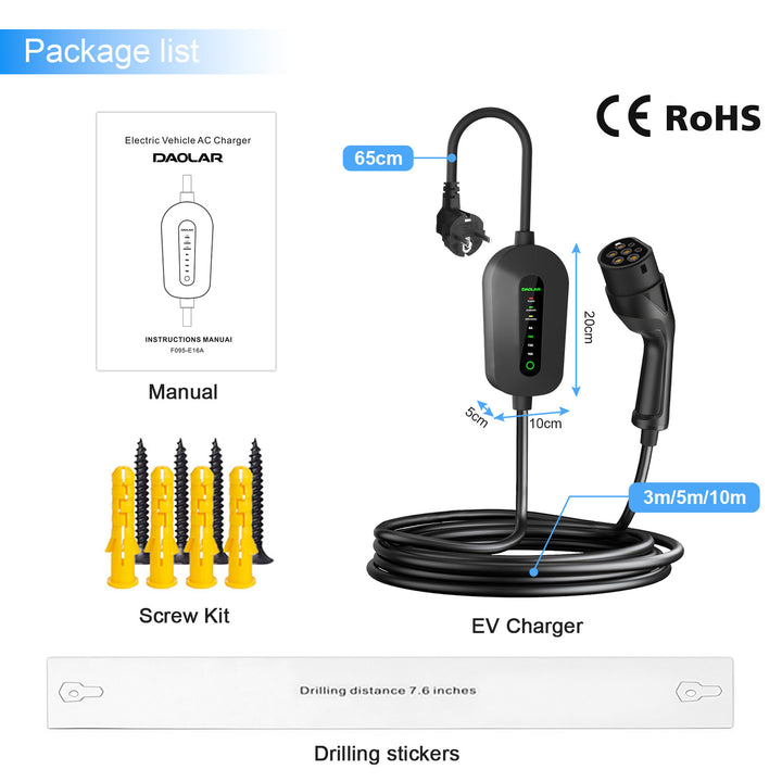 😄Zolang uw auto een Type 2 oplaadpoort heeft, of het nu een EV of PHEV is, ongeacht merk en model, is deze lader 100% geschikt voor uw auto. Sluit hem gewoon aan op een huishoudelijk 16A Schuko-stopcontact om op te laden