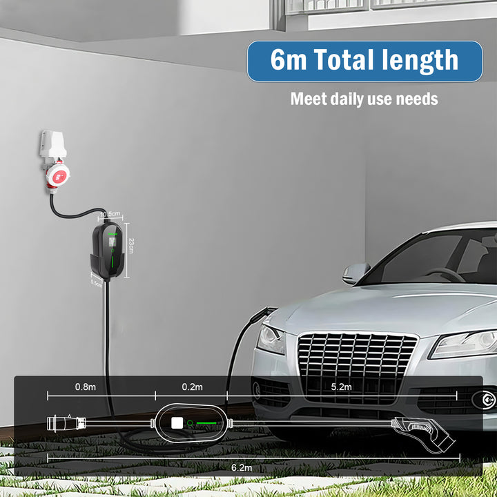 - ✓ Plug & Play-eenvoud: Geen dure elektricien of ingewikkelde installatie nodig. Steek de rode 16A CEE-stekker in een geschikt industrieel stopcontact, sluit de Type 2-kabel aan op uw voertuig en het opladen begint automatisch.