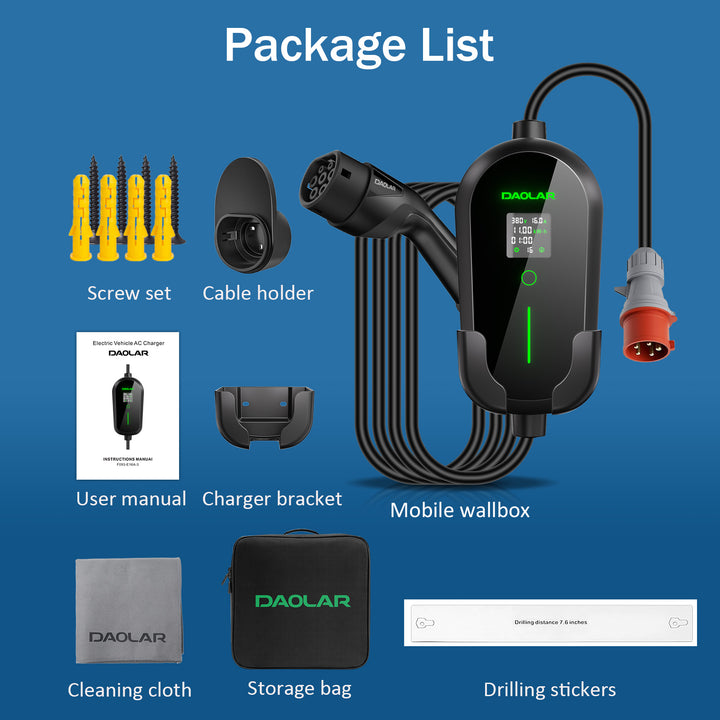 Ontgrendel snel, flexibel en betaalbaar opladen voor uw elektrische voertuig met de Daolar F097-11KW mobiele wallbox.