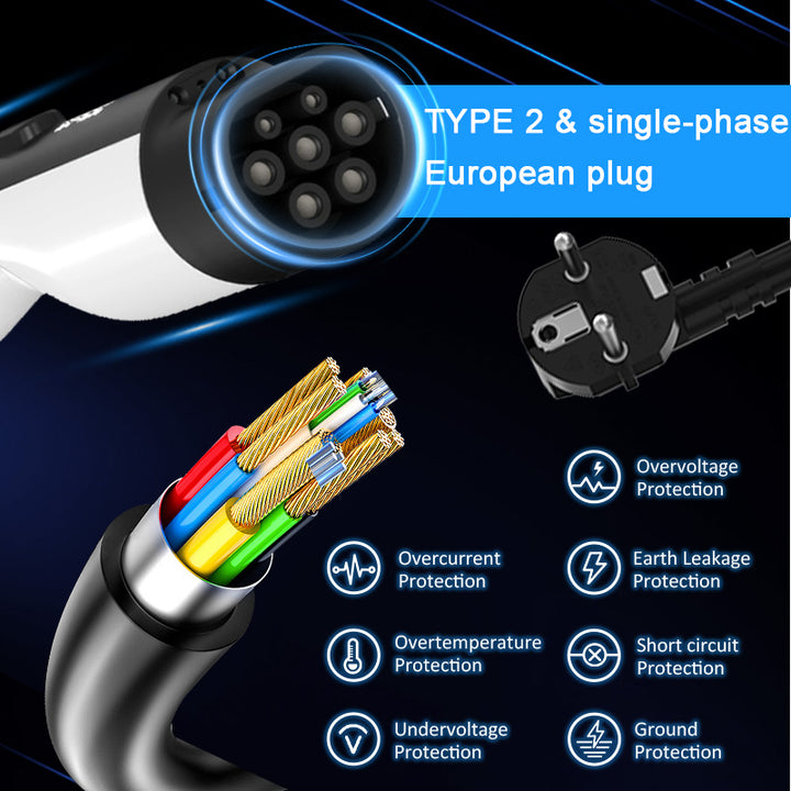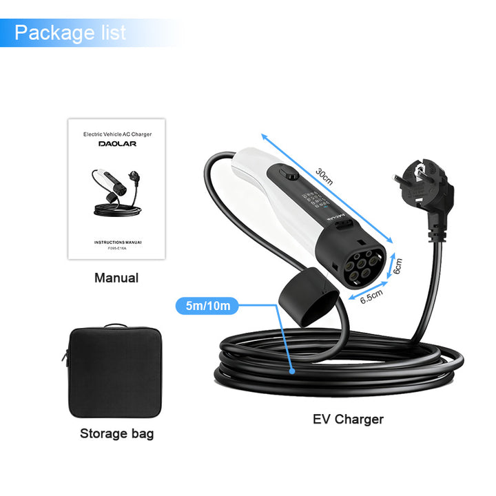 - Zeg vaarwel tegen bulk! We hebben het ontwerp gerevolutioneerd door de zware regelkast te verwijderen. De Type 2-connector weegt slechts 0,6 kg, en zelfs de 5 meter lange **laadkabel** weegt in totaal maar 1,8 kg. Stop hem gemakkelijk in uw kofferbak of rugzak – echt een **EV-lader die in uw zak past**!