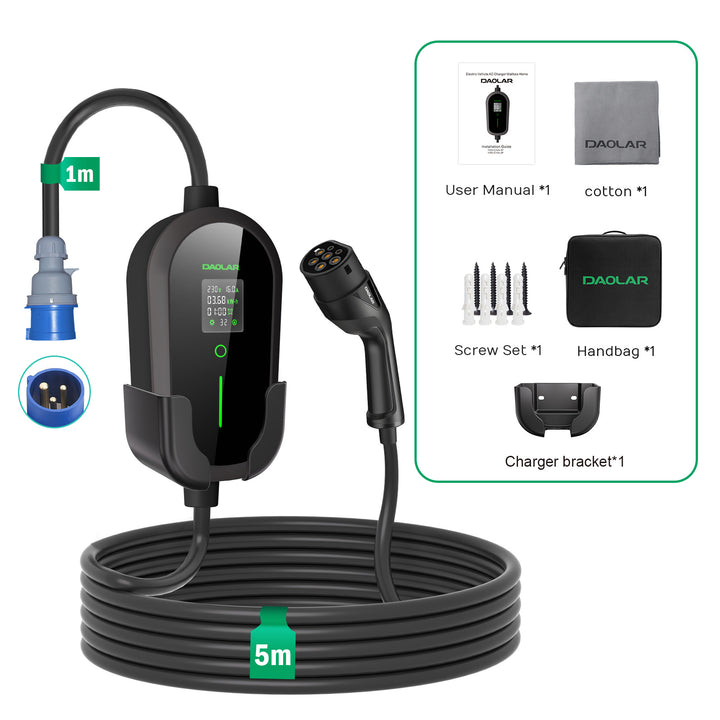 ✅ Gemakkelijk te gebruiken: Lader voor elektrische voertuigen. Compatibel met de meeste elektrische voertuigen en PHEV's die voldoen aan de Type 2-normen. Geschikt voor een 1-fase blauwe 32A CEE-aansluiting, geen installatie vereist.