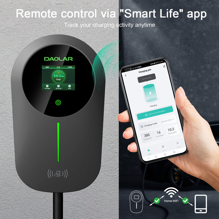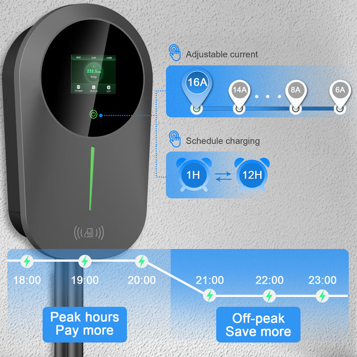 Naast de uitzonderlijke veiligheidsvoorzieningen beschikt de Y083 Wanddoos ondersteunt WiFi-connectiviteit En afstandsbediening via een mobiele app. Je kan controleer de laadstatus, starten of stoppen met opladen, en zelfs ingesteld gepersonaliseerde laadschema's altijd en overal. Bijvoorbeeld met de 24-uurs gepland opladen functie, kunt u automatisch opladen tijdens daluren Wanneer de elektriciteitstarieven lager zijn, bespaart u kosten en haalt u het maximale uit uw tijd. Dit intelligent management verbetert niet alleen het gemak, maar maakt het opladen ook eenvoudiger economisch en efficiënt.